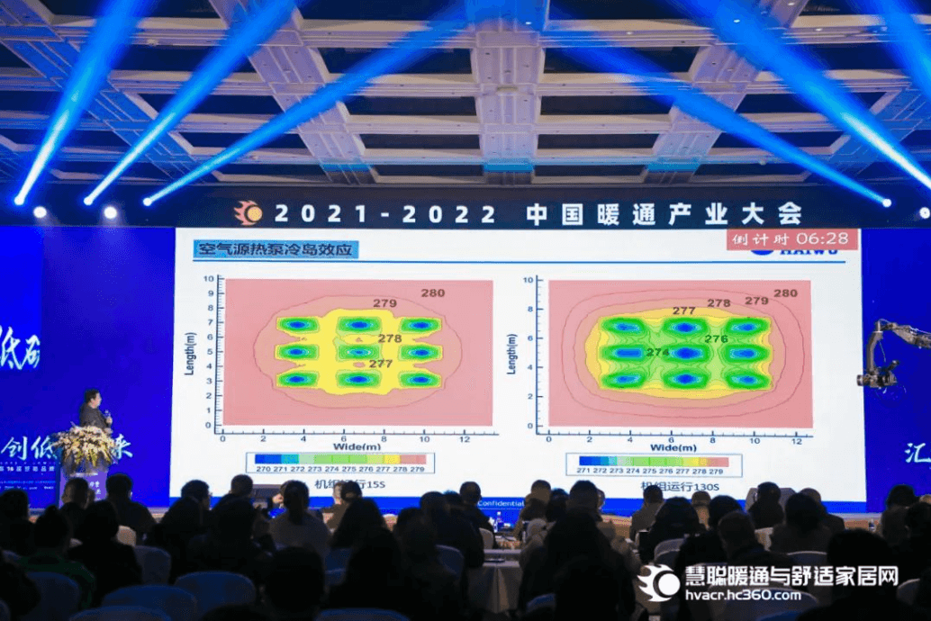 什么是冷島效應?冷島效應會帶來哪些后果?會上,海悟集團高級工程師陳奎對空氣源熱泵冷島效應及噪音問題作出了解答。“冷島效應”本意是對應于“熱島效應”的氣象效應概念。在空氣源熱泵領域,“冷島效應”是指熱泵開啟制熱模式時,換熱器周圍的冷空氣持續上升、下沉,熱泵機組周邊溫度持續下降,整個溫度場的溫度梯度不斷細化并向四周擴展,中心溫度不斷降低,直至在熱泵機組周圍形成一個冷空氣層,導致機組群內外溫差較大(空氣源熱泵機組群內比機組群外氣溫低6℃~8℃),使群內熱泵機組制熱效率降低。要想從根源上避免空氣源熱泵機組的冷島效應,必須合理布置機組,保證機組的通風量。