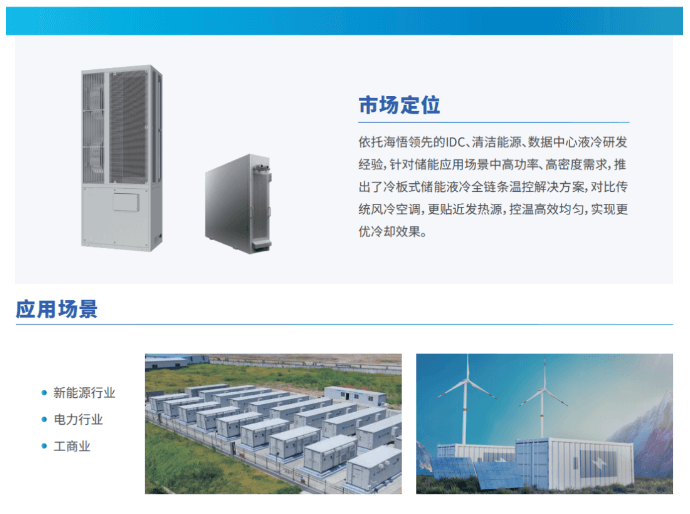 基于儲能產(chǎn)業(yè)蓬勃發(fā)展的背景下,依托海悟領(lǐng)先的IDC、清潔能源、數(shù)據(jù)中心液冷研發(fā)經(jīng)驗(yàn),針對儲能應(yīng)用場景中高功率、高密度、高安全的需求,研發(fā)出儲能液冷空調(diào),對比傳統(tǒng)風(fēng)冷空調(diào),更貼近發(fā)熱源,通過冷卻液進(jìn)行換熱,實(shí)現(xiàn)更優(yōu)冷卻效果。并且空調(diào)具有來電自啟動功能,搭配智能的控制操作系統(tǒng),控溫更加高效、均勻、穩(wěn)定。
