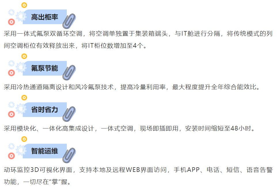 海悟集裝箱數據中心采用“把數據中心裝進集裝箱”的設計理念,將“機柜、電源、配電、空調末端、綜合布線、消防、監控管理”系統一體化集成至集裝箱中,實現輕松安裝,快速轉運。