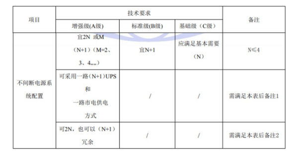 國標GB50174-2017《數(shù)據(jù)中心設計規(guī)范》中對于A、B、C三級數(shù)據(jù)中心不間斷電源系統(tǒng)架構(gòu)的具體要求如下: