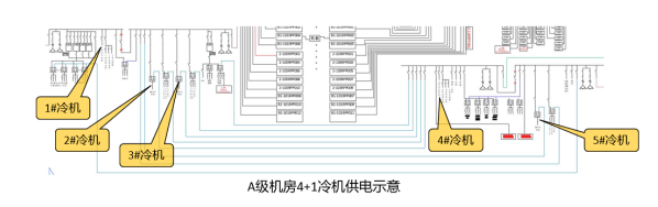C級(jí)機(jī)房無(wú)冷機(jī)末端切換要求;若C級(jí)機(jī)房改B級(jí)、A級(jí)機(jī)房,則部分冷機(jī)需做末端互投,以保證在一個(gè)變電所完全斷電時(shí),另一個(gè)變電所可以帶載滿足機(jī)房冷卻工況的全部冷機(jī)。