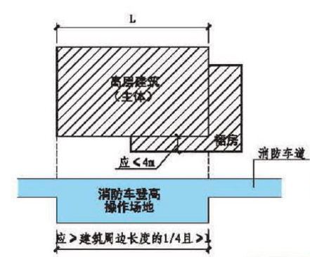 高層建筑應至少沿一個長邊或周長1/4且不小于一個長邊設置消防車登高場地。