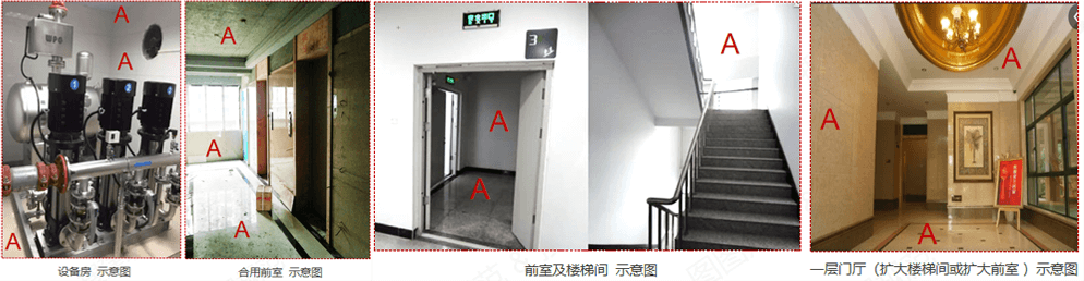 6.5.3下列部位的頂棚、墻面和地面內部裝修材料的燃性能均應為A級: