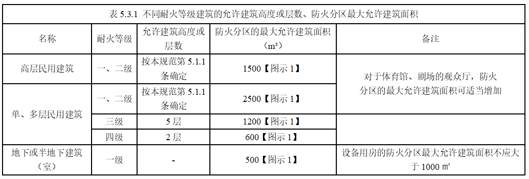 建筑內劃分防火分區面積如下表所示: