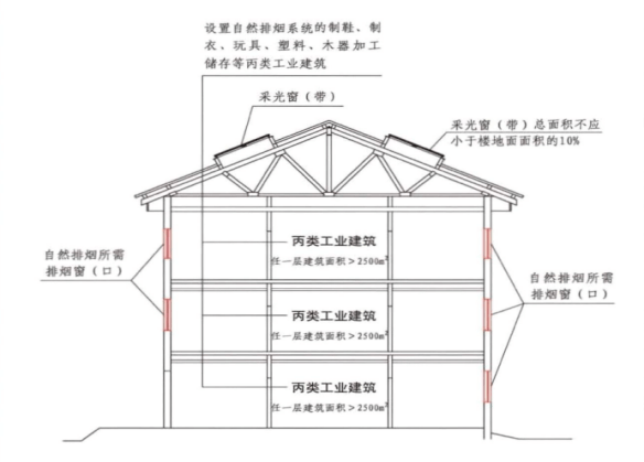 除不適合設置排煙設施的場所、火災發展緩慢的場所可不設置排煙設施外,工業與民用建筑的下列場所或部位應采取排煙等煙氣控制措施:建筑面積大于300m²,且經常有人停留或可燃物較多的地上丙類生產場所,丙類廠房內建筑面積大于300m²,且經常有人停留或可燃物較多的地上房間;除高溫生產工藝的丁類廠房外,其他建筑面積大于5000m²的地上丁類生產場所;建筑面積大于1000m²的地下或半地下丁類生產場所;建筑面積大于300m²的地上丙類庫房;建筑高度大于32m的廠房或倉庫內長度大于20m的疏散走道,其他廠房或倉庫內長度大于40m的疏散走道,民用建筑內長度大于20m的疏散走道。