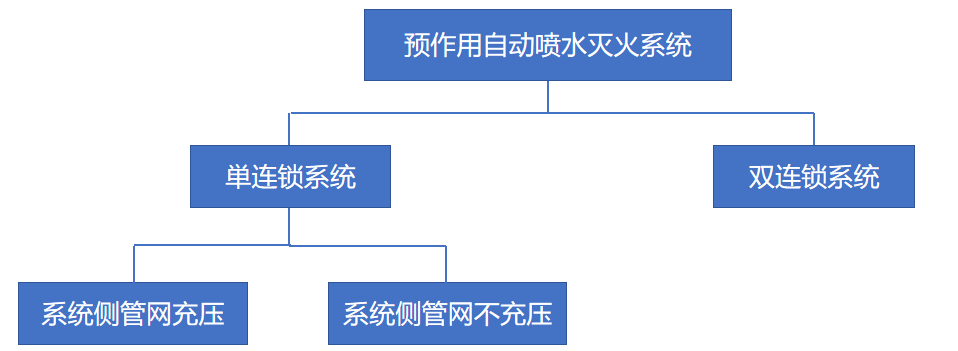 単連鎖預作用系統是指僅有火災自動報警系統直接控制的預作用系統。處于準工作狀態時嚴禁誤噴的場所,宜采用単連鎖預作用系統。単連鎖預作用系統既兼有濕式系統及濕式系統的優點,同時又避免了濕式及干式系統的缺點。