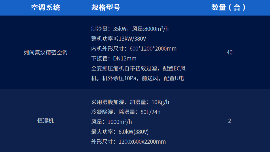 列間級精密空調方案具體新增空調設備明細如下: