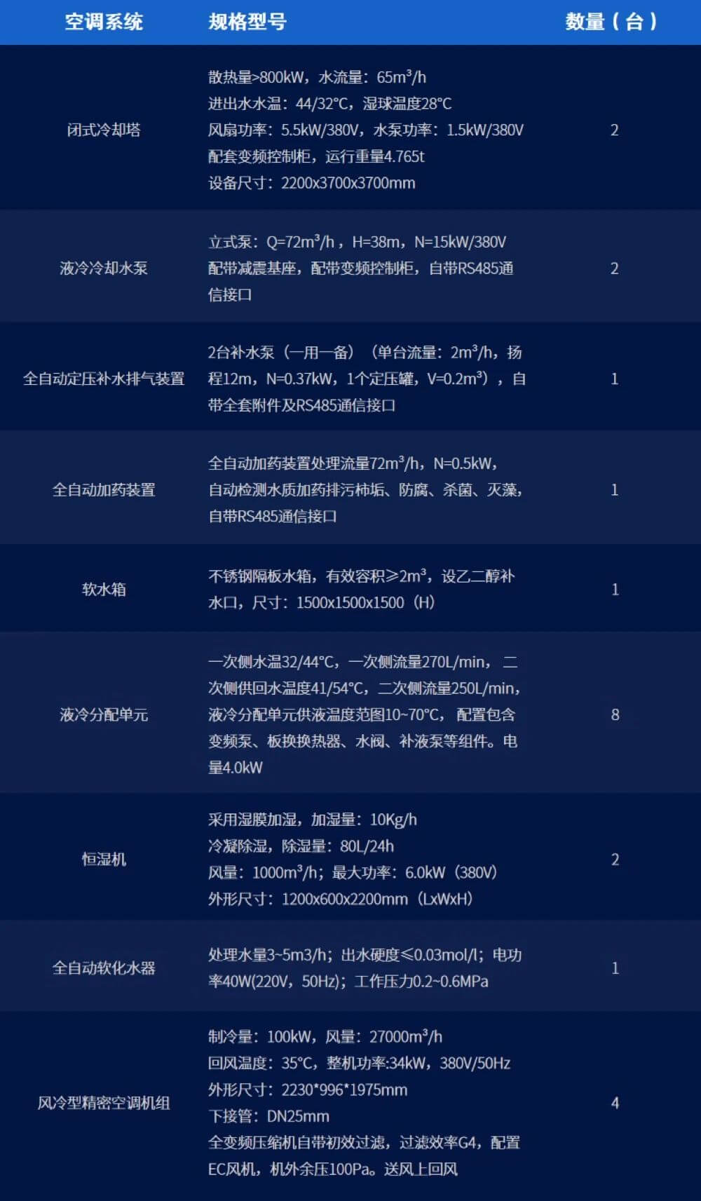 冷板式液冷空調方案具體新增空調設備明細如下: