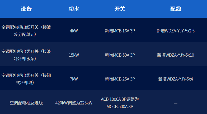 冷板式液冷空調方案具體新增配電設備明細如下: