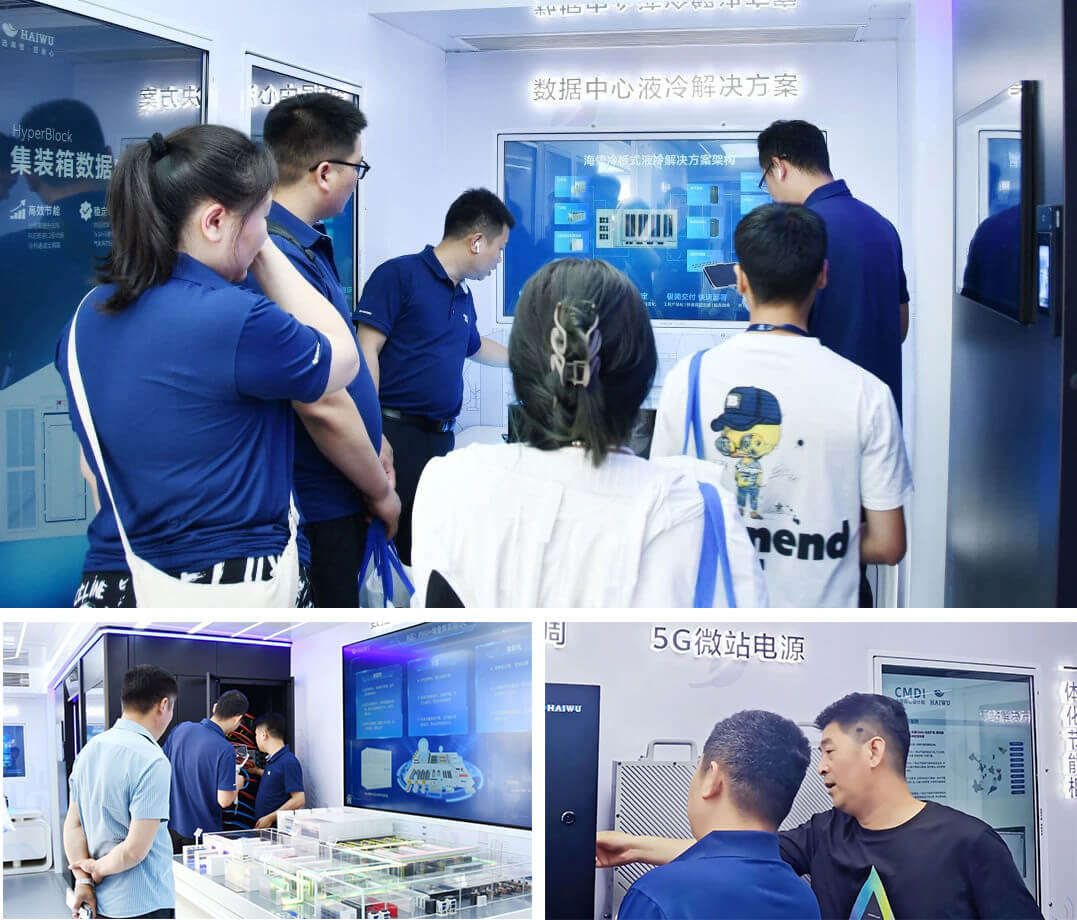 在展車參觀環節,海悟數據中心全場景解決方案、HyperBlock系列微模塊數據中心、邊緣數據中心解決方案、數據中心液冷解決方案等專業解決方案吸引眾多嘉賓駐足觀摩,展開深入的探討與交流。