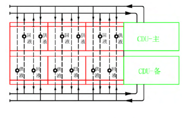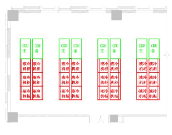 3)將CDU集中布置到一個區域或者集中到幾個有序區域,使液冷設備管路和冷卻水管路有明確的物理分區,一方面可以使各功能區有序布局,另一方面能夠更加簡潔的實現冷卻水管路和閥門冗余設計。