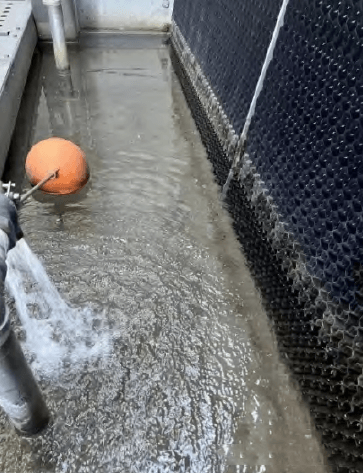 開式塔在常規冷凍水系統中使用較普遍,優點之一價格較低。其次,開式塔系統簡潔,不需要閉式系統的定壓裝置,沒有噴淋泵,無需添加乙二醇防凍,運行維護簡單。且同等工況下設備功率低,甚至可以選擇一些無風機冷卻塔來搭配運行,可以把PUE降到極致。但開式塔最大的缺點就是循環水與外界環境直接接觸,需重點關注水質處理,目前開式塔系統水質控制好和壞的案例均存在,一方面是水處理廠家參差不齊的原因,另一方面是碳鋼管道自身在開式系統中容易腐蝕。筆者有幸參與開式塔系統水質控制良好的項目,見圖 8水質清澈良好。具體措施為采用鍍鋅管道法蘭連接,而非采用碳鋼管道外表面刷防銹漆的方式,采用鍍鋅管道的系統,日常運行只需要應對結垢和夏季藻類細菌滋生的問題,水處理的成本大幅降低。且使用鍍鋅管道造成的成本增加不到管路成本的10%,完全可以從水處理減少的費用中來覆蓋這部分增加。通過如上措施,不但能節約成本,還能良好的控制水質,以及減少水處理化學品的使用。