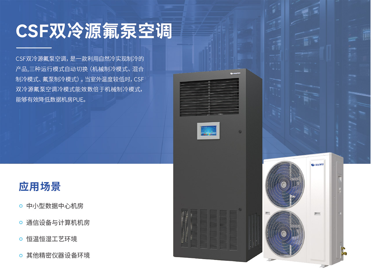在數字化轉型的浪潮中,數據中心作為信息社會的基石,其能耗問題日益凸顯。如何在確保高效運行的同時,實現節能減排,成為行業共同面臨的挑戰。海悟CSF氟泵精密空調,以創新的氟泵自然冷卻技術,引領數據中心綠色變革,為中小型數據中心機房、通信設備與計算機機房等精密環境提供高效、節能的解決方案。