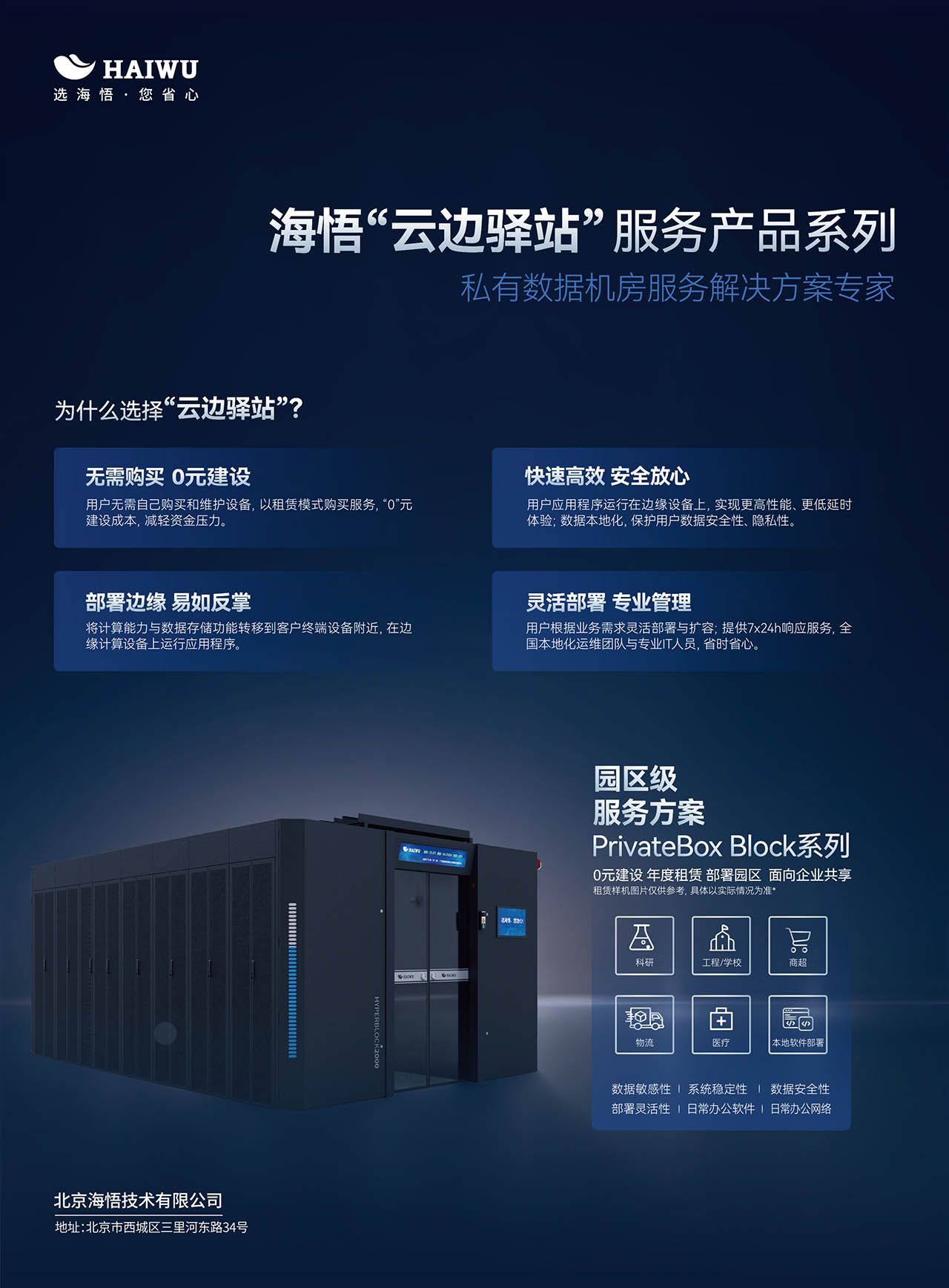 海悟云“云邊驛站”園區(qū)本地化私有數(shù)據(jù)機(jī)房托管服務(wù)解決方案,是企業(yè)在數(shù)字化轉(zhuǎn)型過程中的得力助手。它憑借高效、節(jié)能、環(huán)保的算力解決方案,以及靈活、便捷的業(yè)務(wù)模式,為中小型企業(yè)、商超物流、小型醫(yī)療機(jī)構(gòu)等場(chǎng)景提供了強(qiáng)有力的支持。未來,海悟云將繼續(xù)深耕云計(jì)算領(lǐng)域,不斷創(chuàng)新和優(yōu)化服務(wù),為企業(yè)創(chuàng)造更大的價(jià)值。