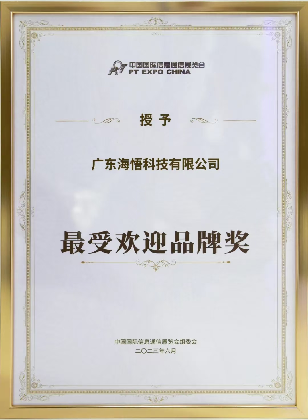 憑借過硬的綜合實力,海悟不僅連續蟬聯通信領域“最受歡迎品牌”獎,還先后榮獲“國家級工業產品綠色設計示范企業”、“國家綠色供應鏈管理企業”、“廣東省制造業單項冠軍”、“廣東知名品牌”及國際紅點獎、iF設計獎等諸多榮譽。這些榮譽的獲得,不僅是對海悟在技術創新和可持續發展方面所取得成就的肯定,更是對其品牌知名度和美譽度的有力提升。