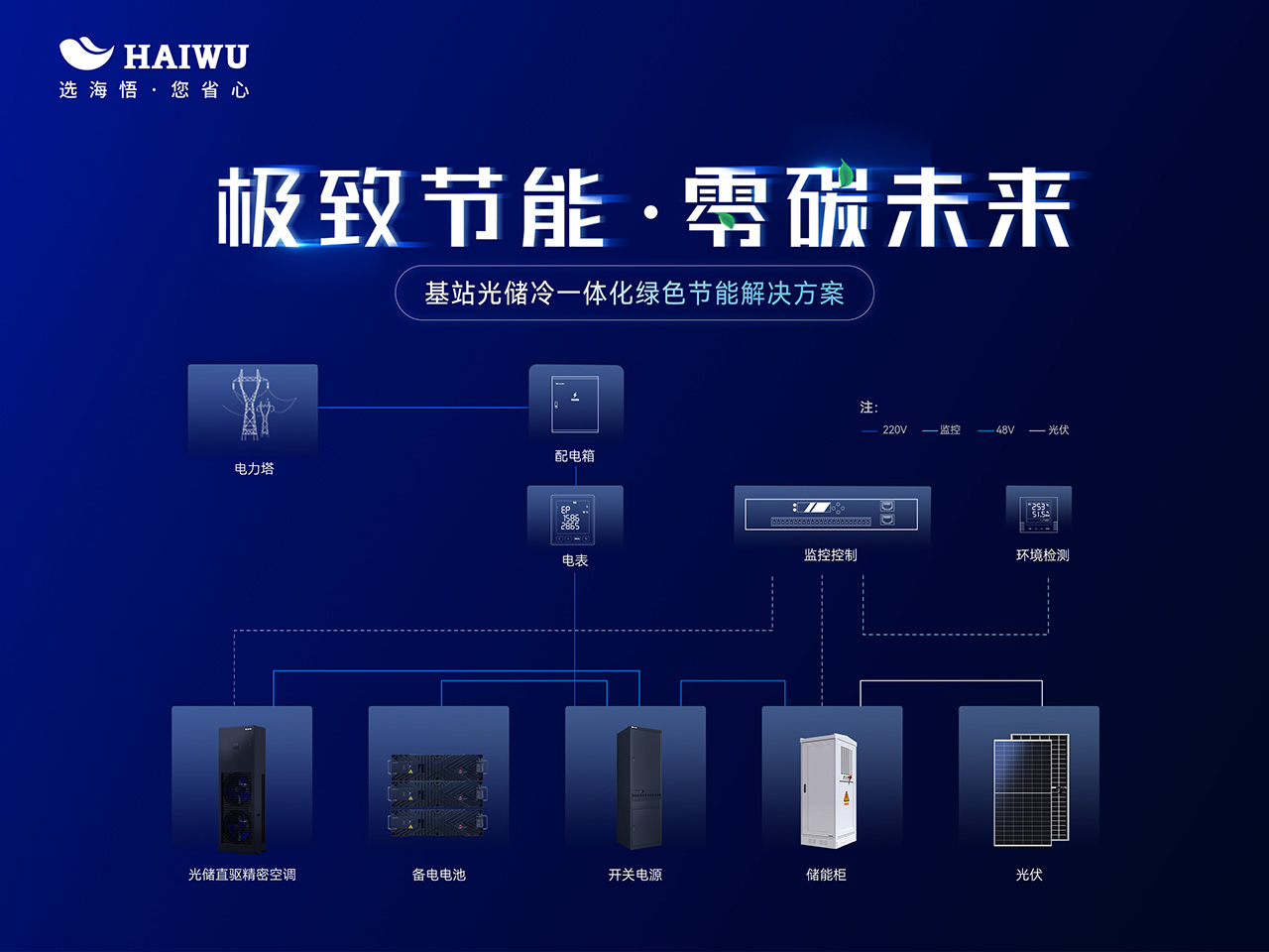 海悟以“極致節能,零碳未來”為旗幟,致力于數據中心、通信機房及通信基站三大場景下的前沿解決方案的研發與推廣。在通信機房領域,海悟推出了全場景氟泵+變頻系列產品,通過自動尋優控制與極致利用自然冷源的技術手段,為不同應用場景提供了極致的PUE表現,實現了能效與環保的完美平衡。而在通信基站方面,海悟的分布式疊光系統、儲能系統及高效制冷系統更是實現了綠色新能源的即時接入與低成本運營,有效降低了基站的能耗與運行成本,為全球通信行業的綠色低碳轉型樹立了新的標桿。