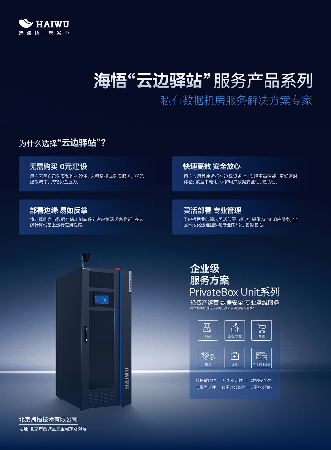 選擇海悟云 “云邊驛站”,企業(yè)無需再為高昂的自建機房成本和復雜的運維工作煩惱,也不必擔心數(shù)據(jù)在公有云環(huán)境下的安全隱患。海悟云 “云邊驛站” 憑借本地化私有數(shù)據(jù)機房托管服務(wù),既能確保數(shù)據(jù)的安全性和隱私性,又能提供穩(wěn)定可靠的算力支持。同時,海悟云專業(yè)的團隊將為企業(yè)提供全方位的運維服務(wù),讓企業(yè)能夠?qū)W⒂谧陨順I(yè)務(wù)的發(fā)展。