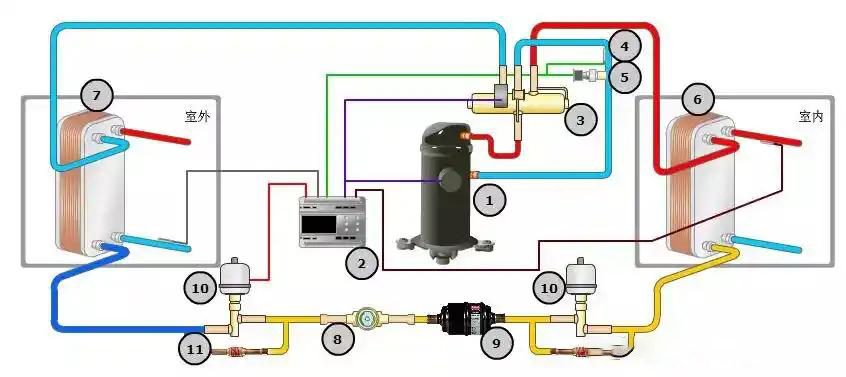 循環(huán)過程:供暖末端設(shè)備將熱量傳遞給室內(nèi)空氣,實現(xiàn)室內(nèi)取暖。而冷卻后的制冷劑,則通過膨脹閥回到蒸發(fā)器,再次踏上吸收熱量的旅程,形成了一個完美的閉環(huán)循環(huán)。