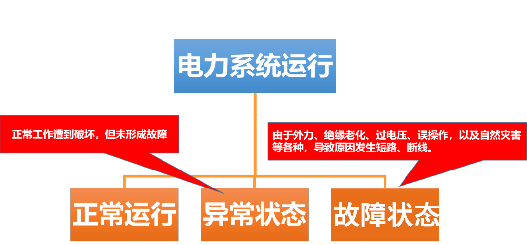 ◎故障狀態(tài):一次設(shè)備運行中由于外力、絕緣老化、過電壓、誤操作,以及自然災(zāi)害等各種,導(dǎo)致原因發(fā)生短路、斷線。