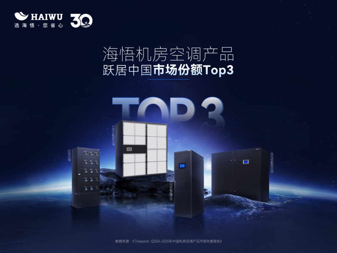 經過長期的努力與積累,海悟構建起了一套完善的機房空調產品體系。該體系涵蓋了房間級、列間級、風墻等多產品線,能夠很好地適配從邊緣節點到智算中心的各種場景,真正做到了全場景覆蓋。也正因如此,海悟的機房空調產品能夠廣泛服務于通信、互聯網、金融、政企、教育等眾多行業,為不同行業的客戶提供了可靠的溫控解決方案,贏得了市場的高度認可,從而推動其市場份額順利躍居中國第三。