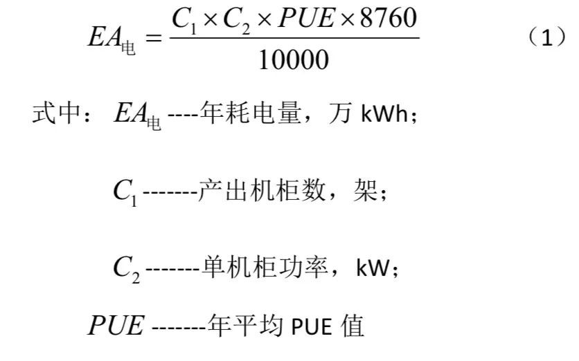 根據(jù)數(shù)據(jù)中心項目產(chǎn)出機(jī)柜數(shù)、單機(jī)柜功率、年平均PUE 值可求得數(shù)據(jù)中心年耗電量, 計算公式如下: