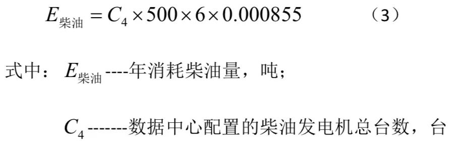 數(shù)據(jù)中心多采用10kV 基本功率為 2000kW 柴油發(fā)電機(jī)組,根據(jù)經(jīng)驗值每臺機(jī)組每小時 消耗柴油 500升,按每月每臺柴油發(fā)電機(jī)保養(yǎng)檢修運行 30 分鐘估算,每臺柴油發(fā)電機(jī)每年 運行 6 小時,由此可求出數(shù)據(jù)中心每年柴油消耗量,計算公式如下: